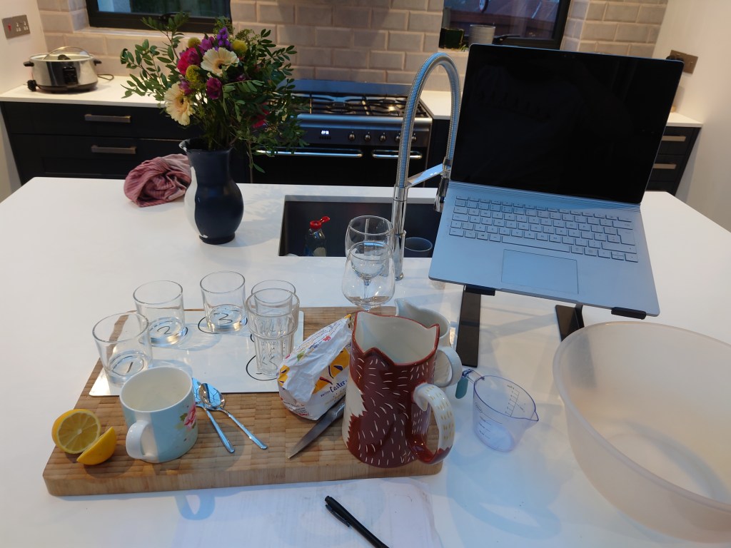 We kept some of the practical elements separate so we could do them together and one is show above. The practical sessions were part of my motivation for doing this. It’s always interesting to see how people do online study for fully practical things. Whether it’s making home laboratory kits or what was in this case just using some domestic equipment to make different experiences to reflect on.